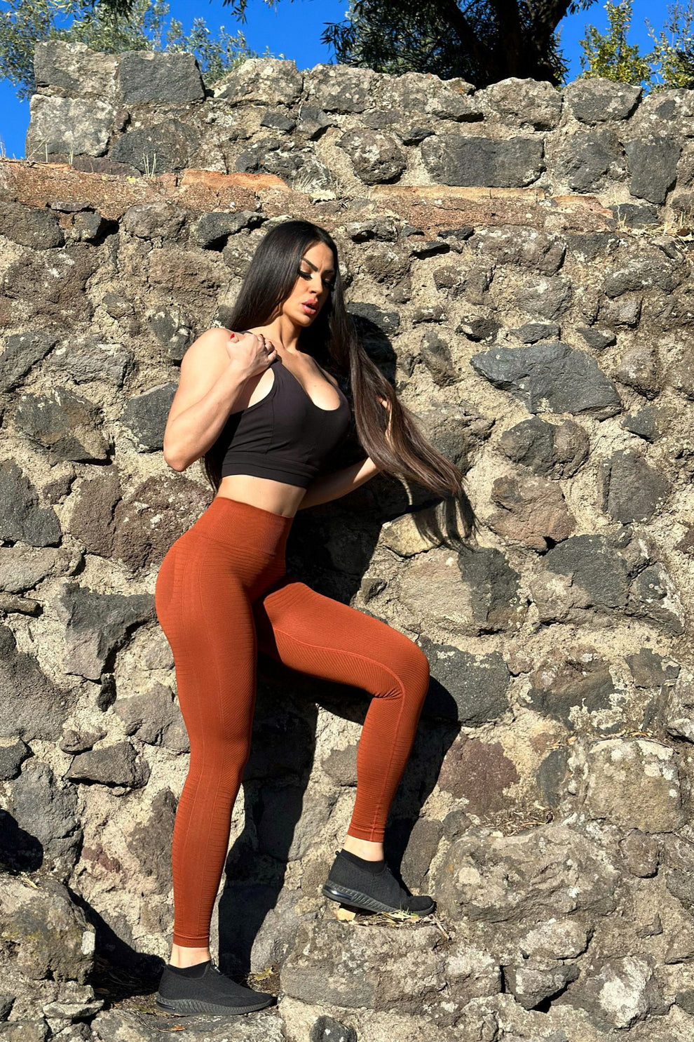 Leggings con vita alta e linea centrale, effetto PUSH-UP. Traspiranti ad asciugatura rapida. Ideali per il tempo libero e per gli allenamenti in palestra.